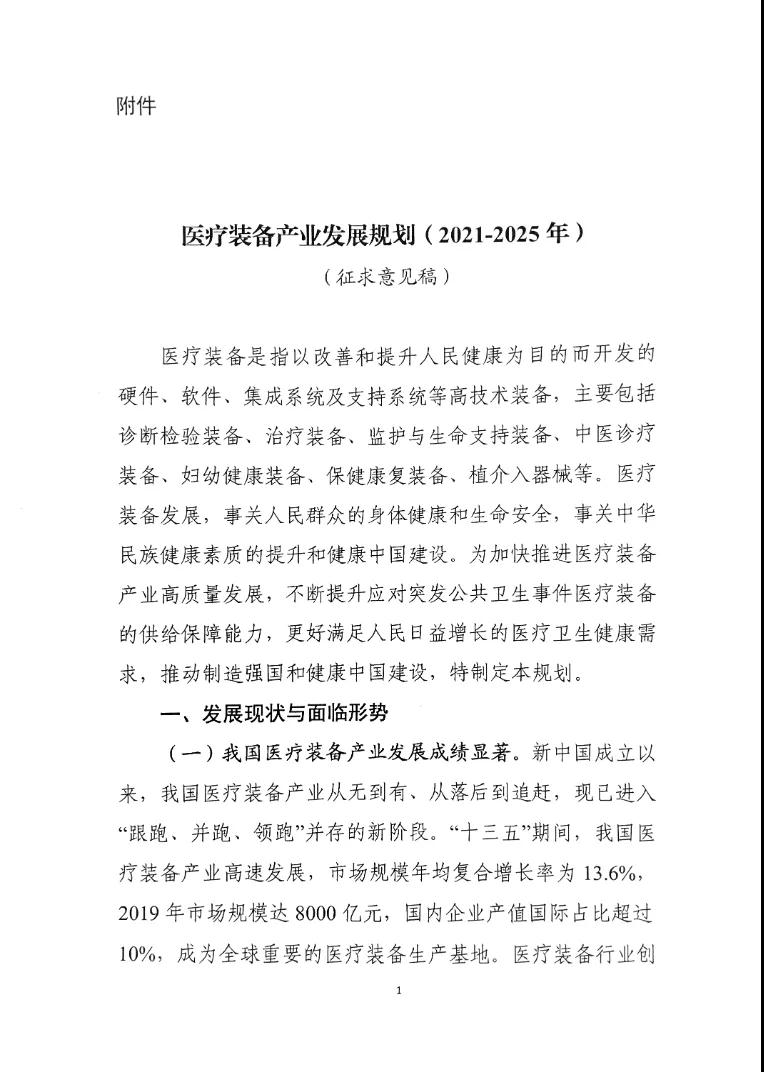 附件:医疗装备产业发展规划(2021-2025年)(征求意见稿)