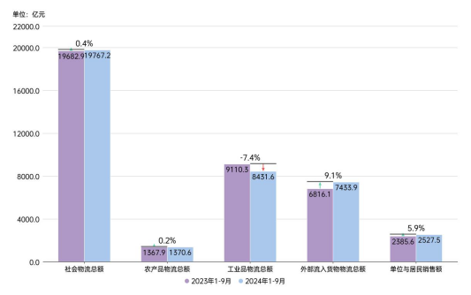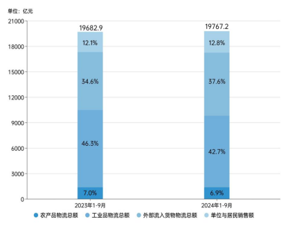 2024年1-9月份,吉林省社会物流运行总体平稳,供需适配能力持续增强,核心指标实现稳定增长,物流运行效率持续改善,社会物流总费用与GDP的比率有所回落。