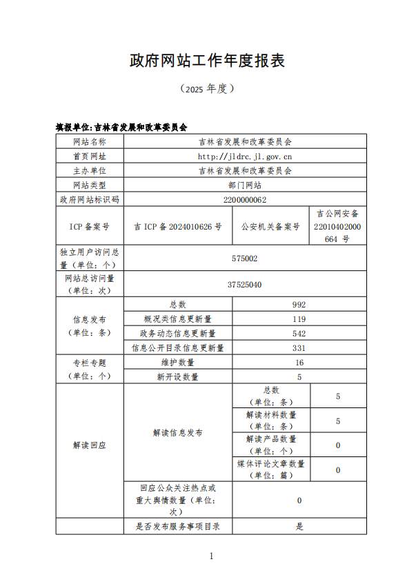 吉林省发展和改革委员会2025年度政府网站年度工作报表