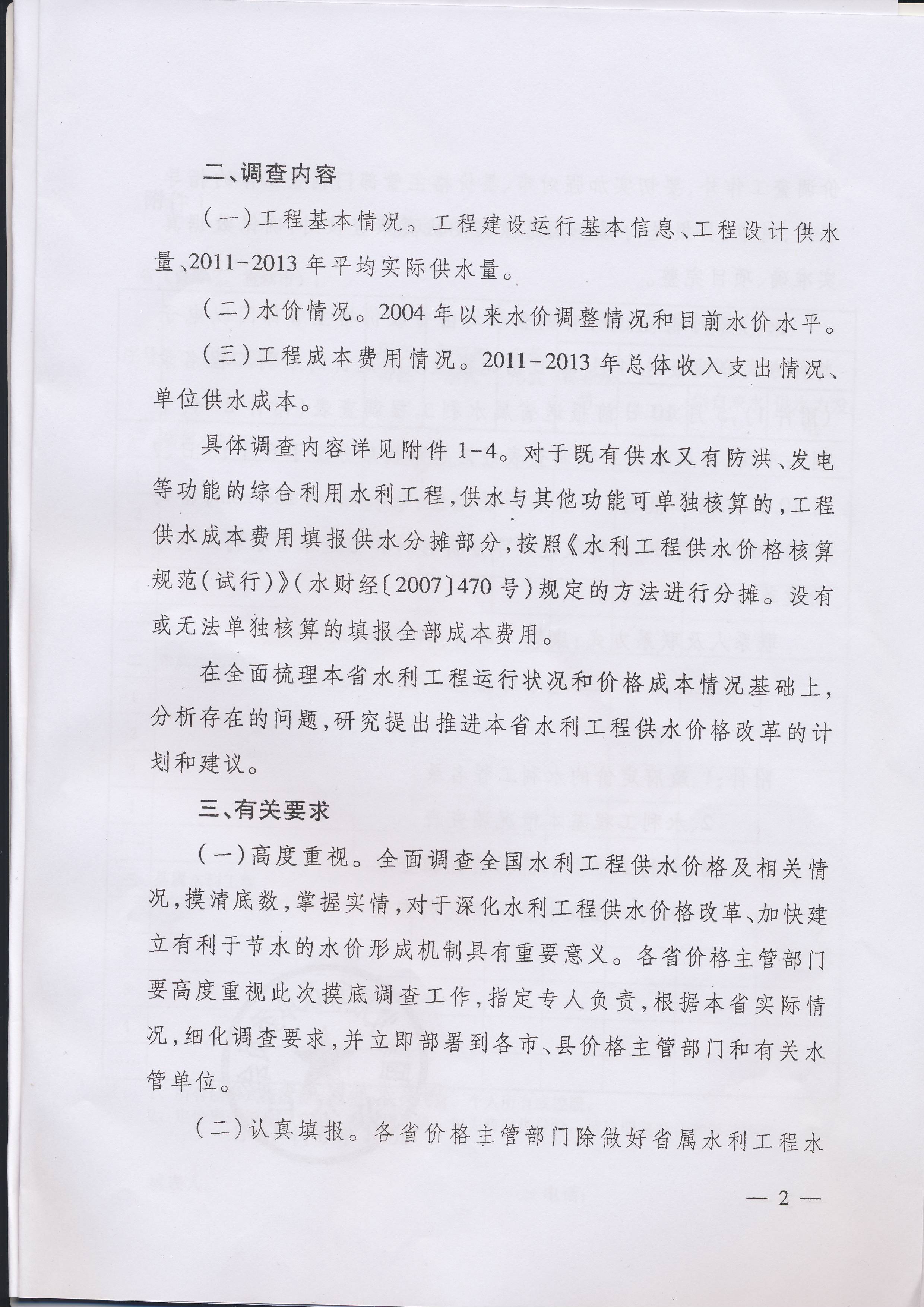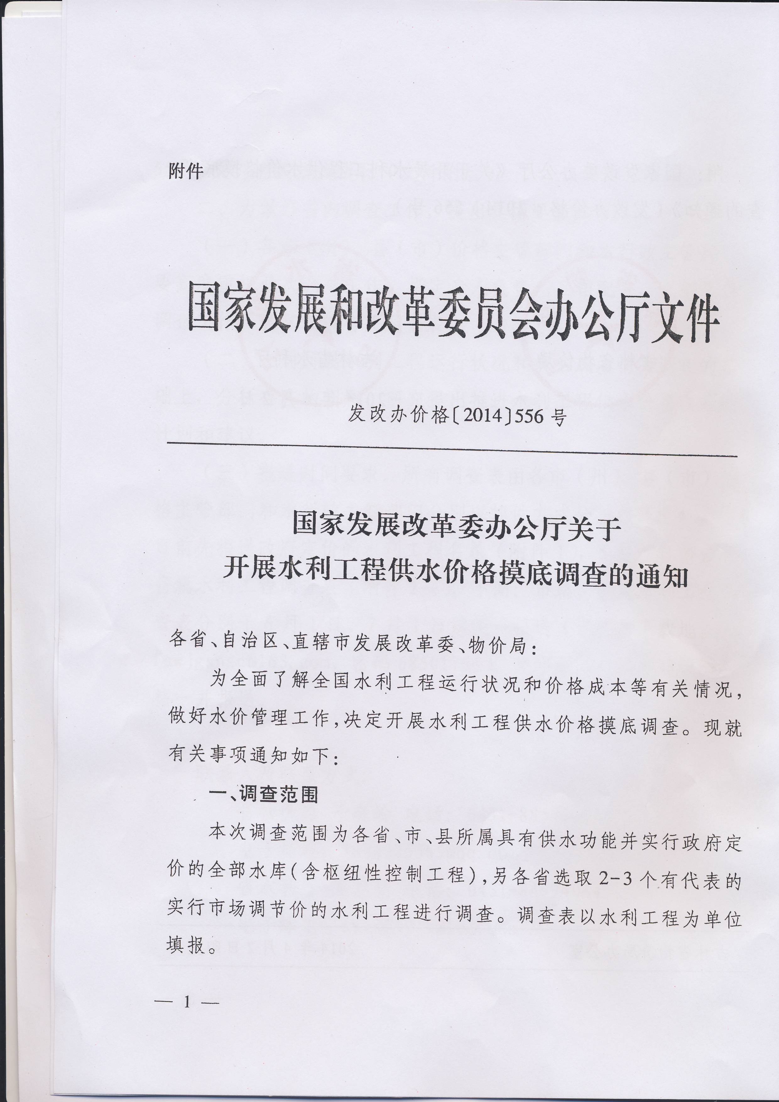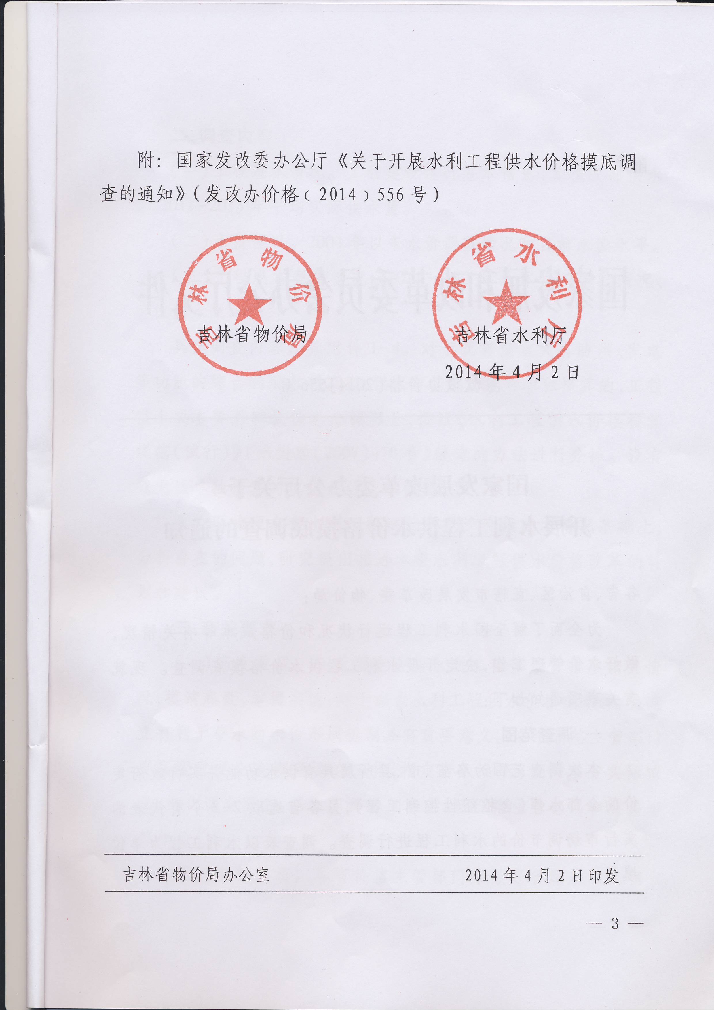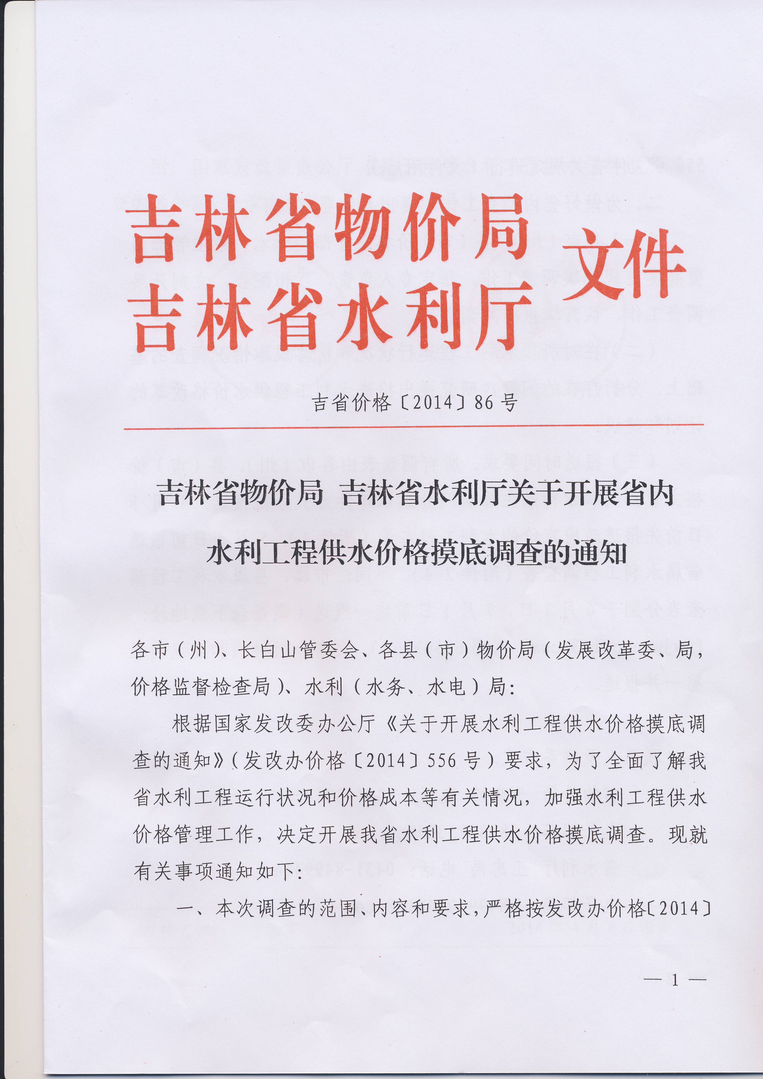关于开展省内水利工程供水价格摸底调查的通知(吉省价格〔2014〕86号)