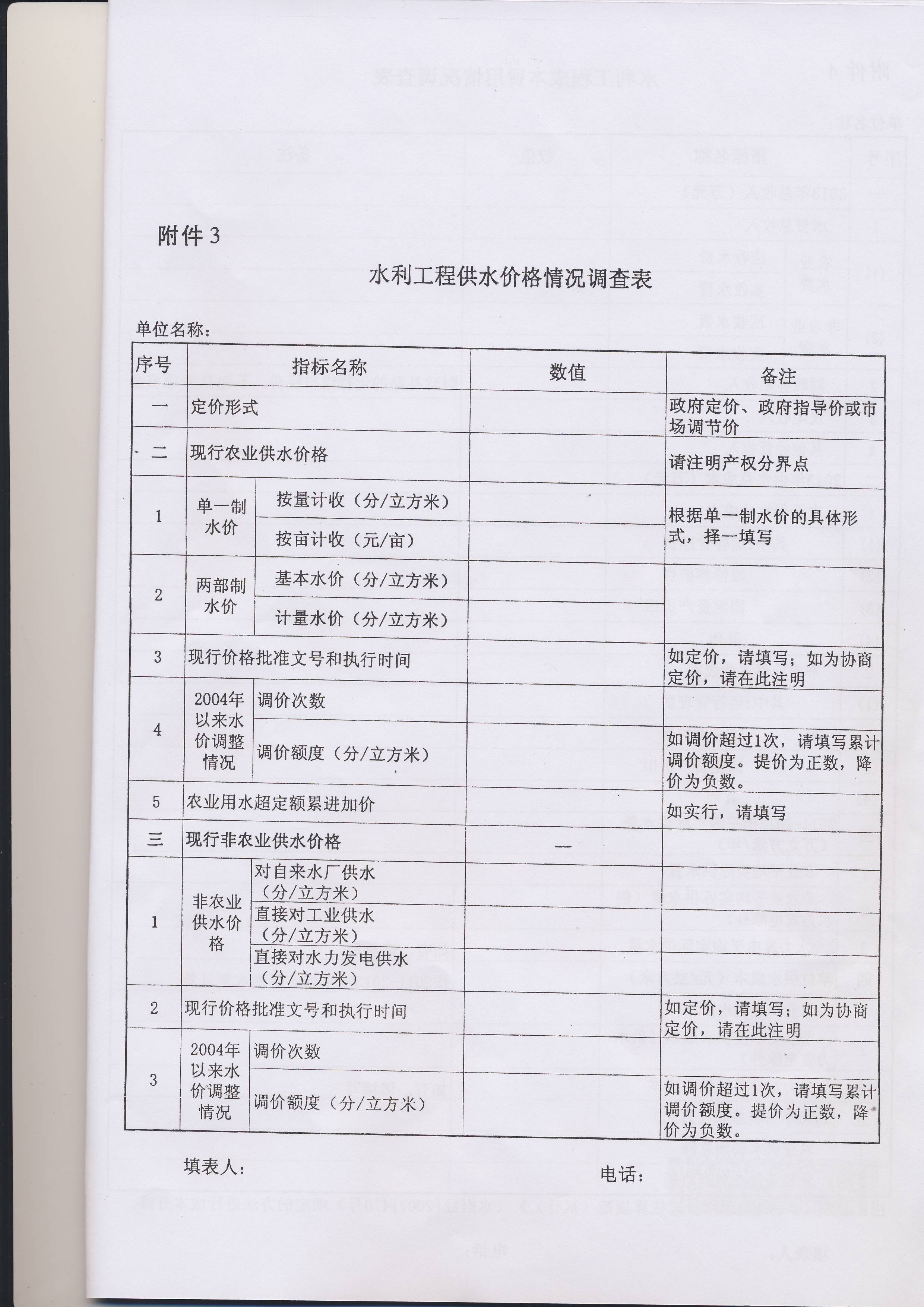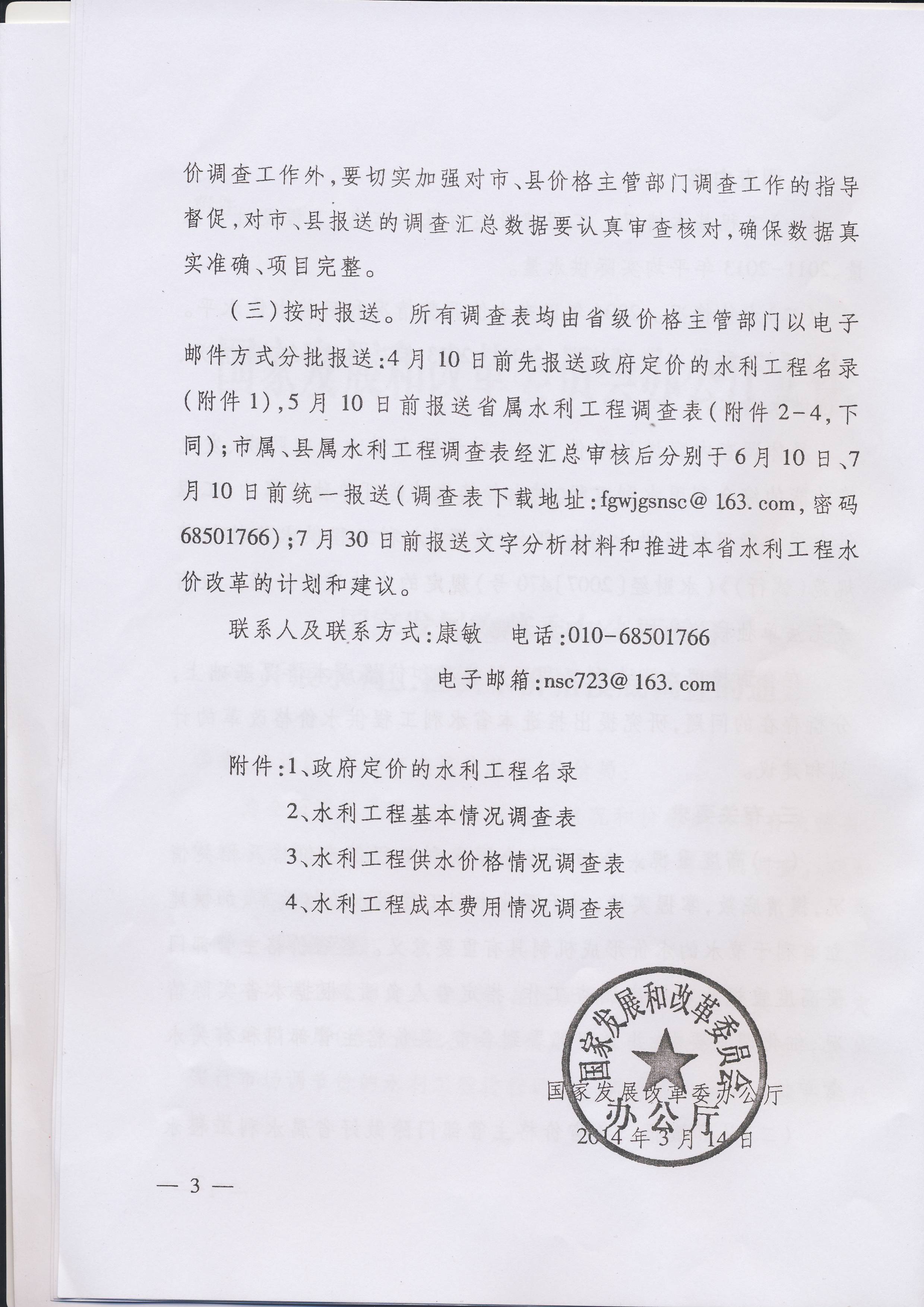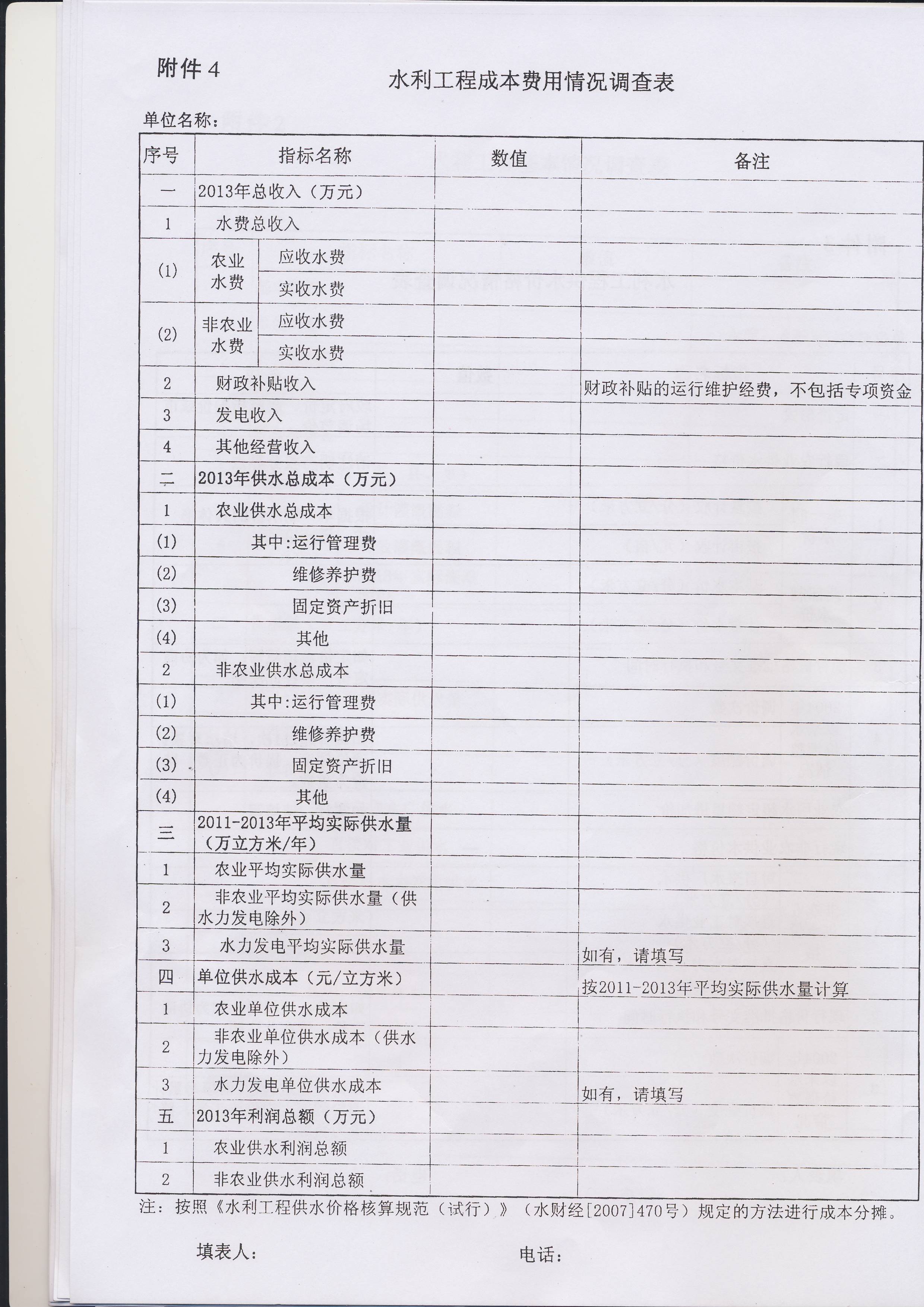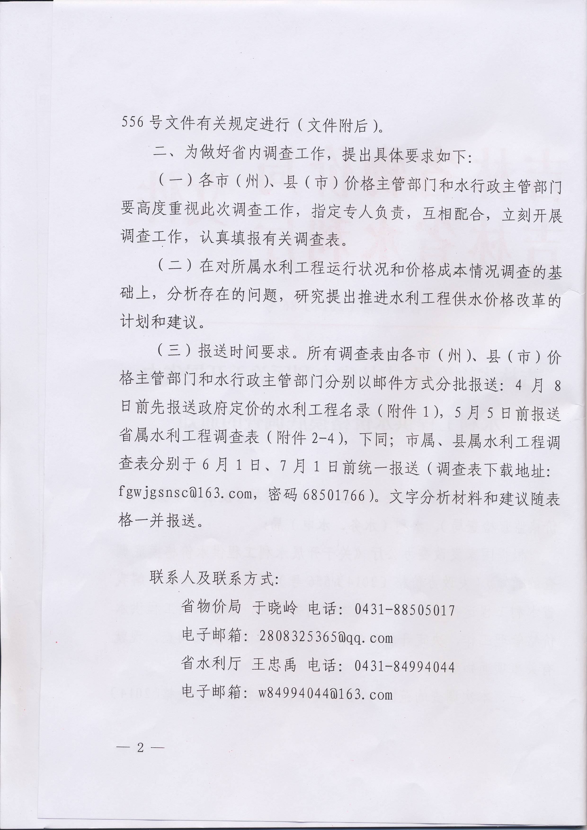 关于开展省内水利工程供水价格摸底调查的通知(吉省价格〔2014〕86号)