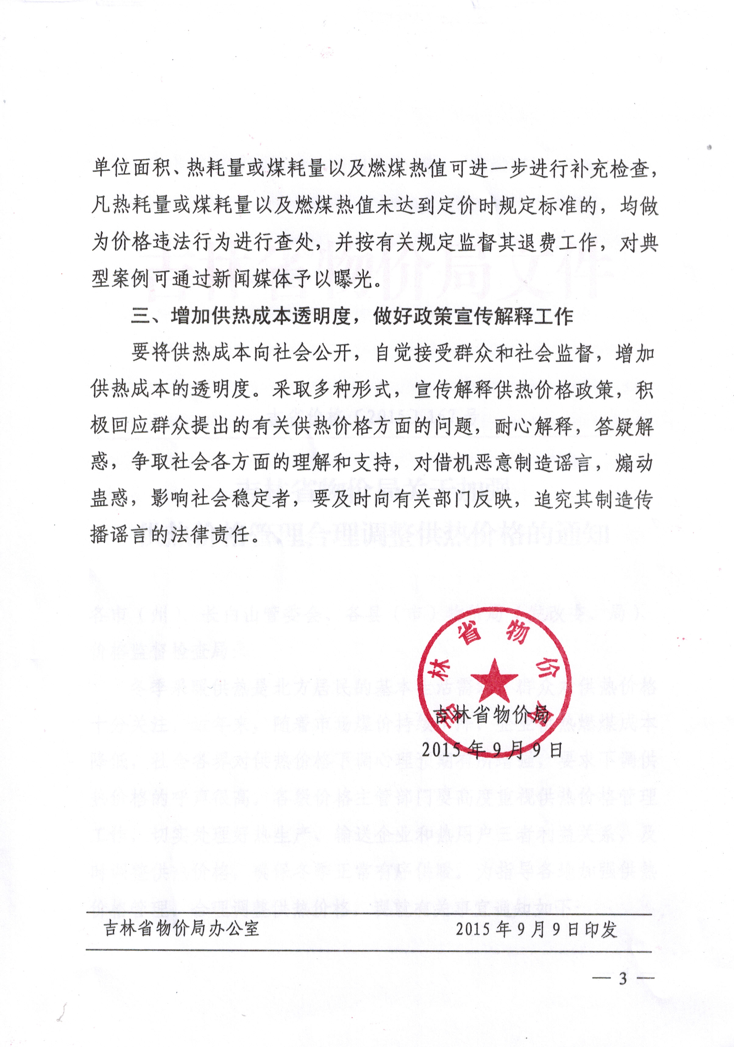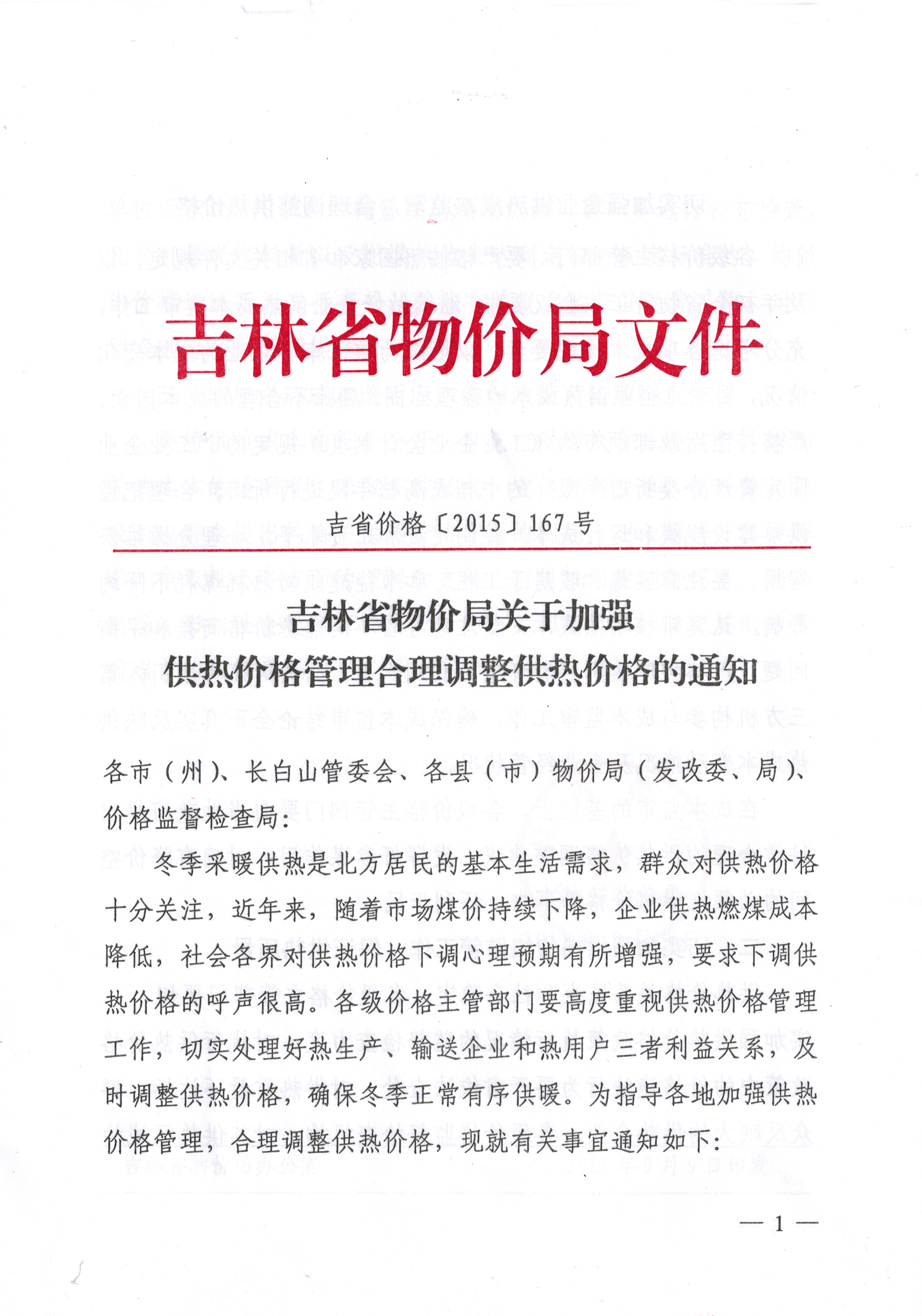 吉林省物价局关于加强供热价格管理合理调整供热价格的通知