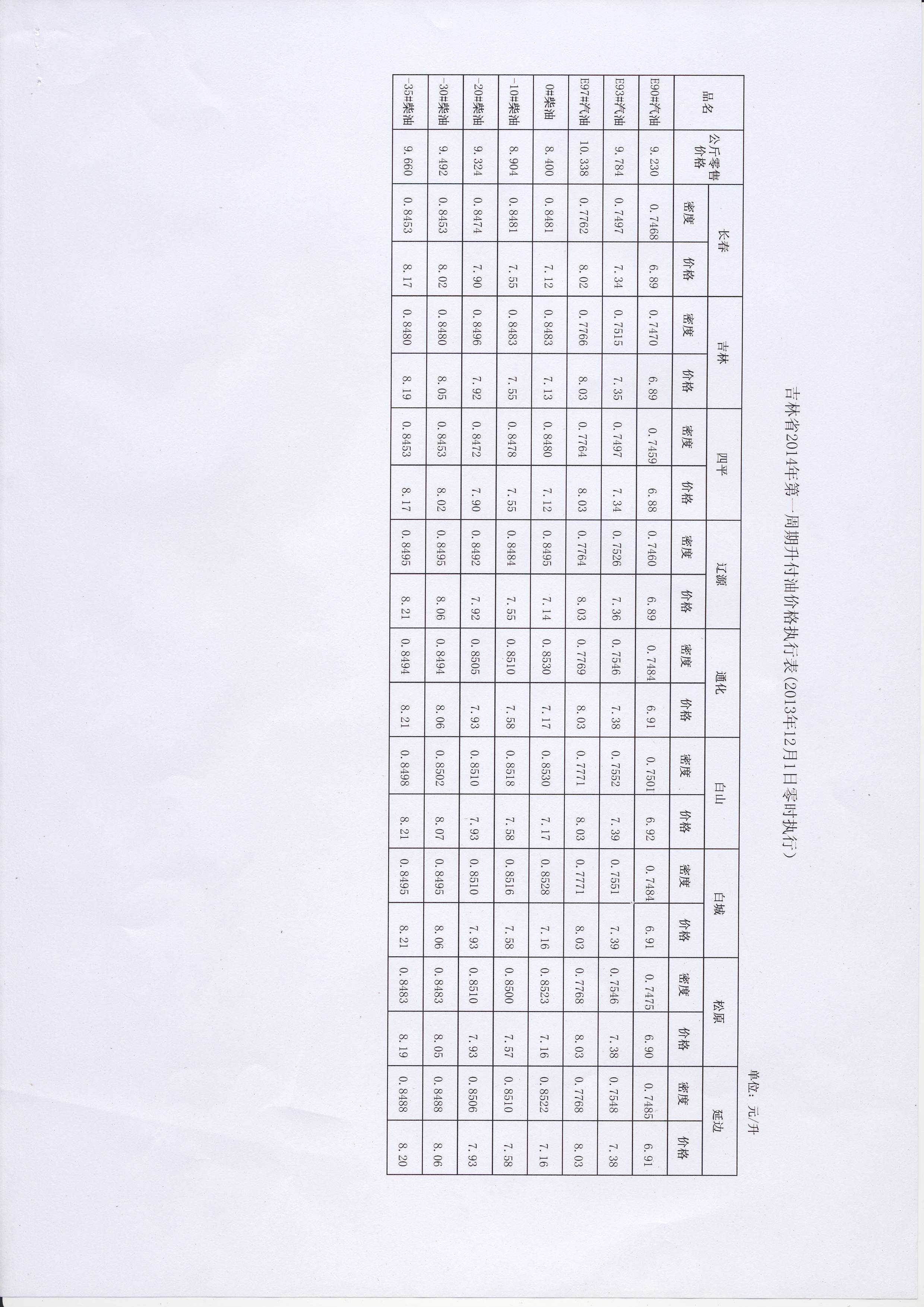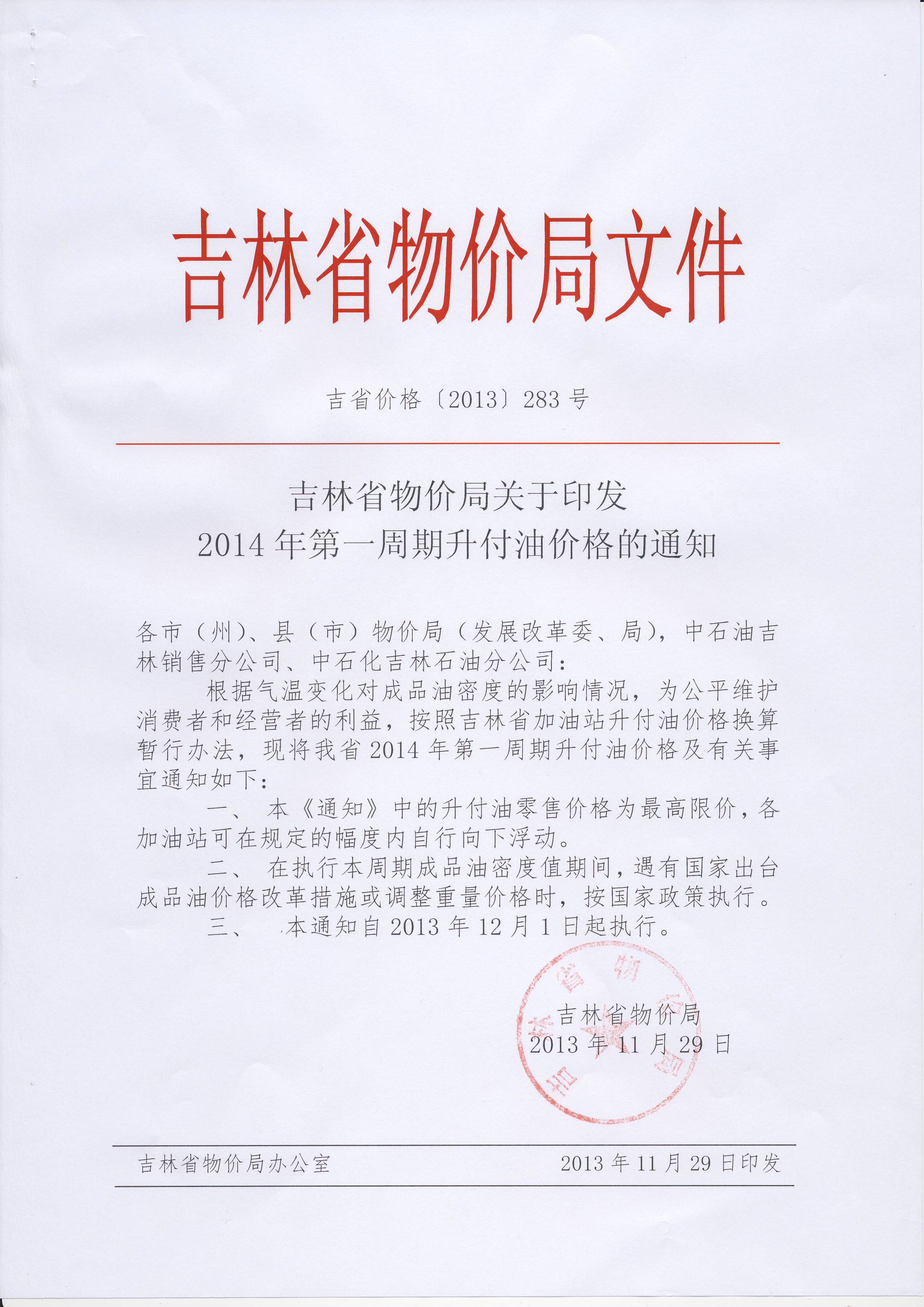 吉林省物价局关于印发2014年第一周期升付油价格的通知