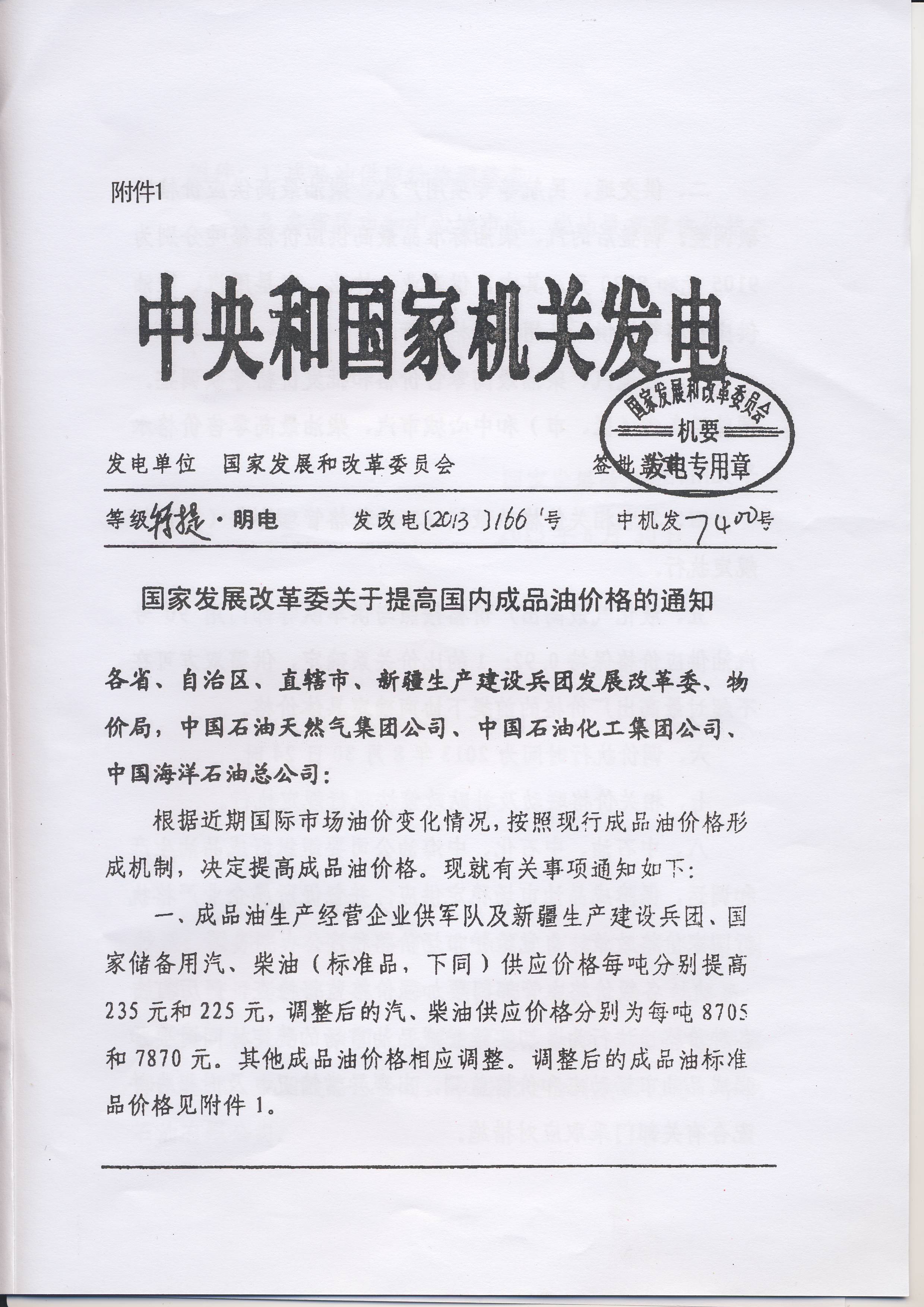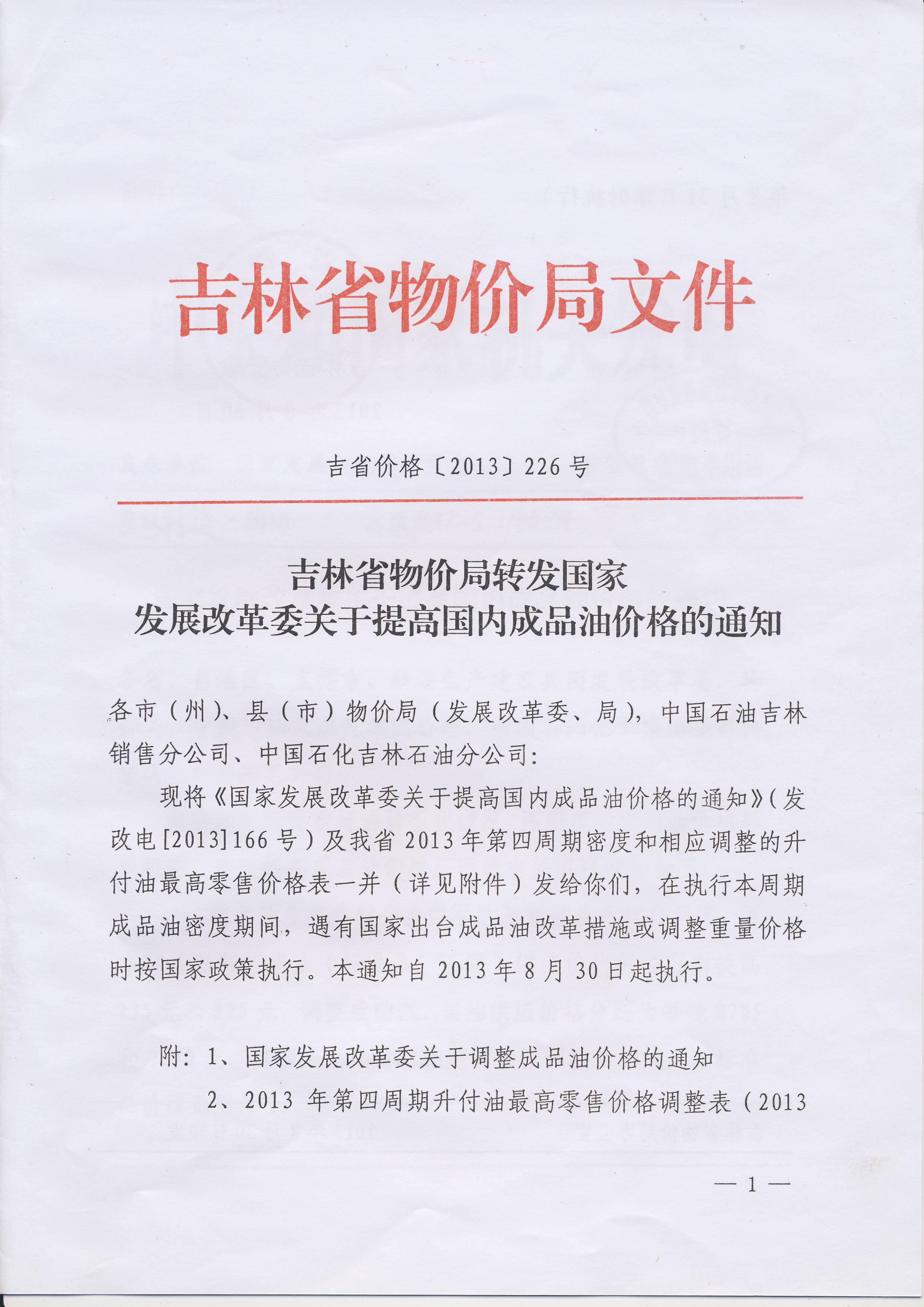 吉林省物价局转发国家发展改革委关于提高国内成品油价格的通知