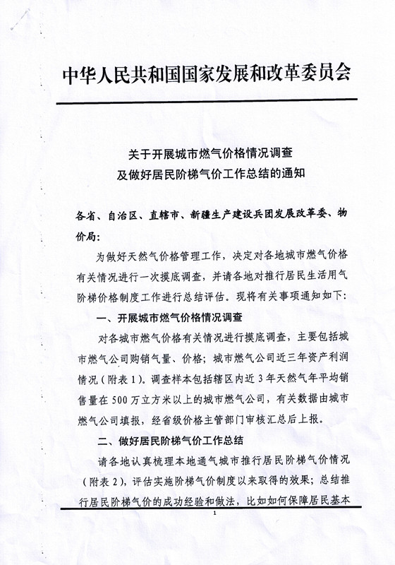 转发国家发展改革委关于开展城市燃气价格情况调查及做好居民阶梯气价工作总结的通知