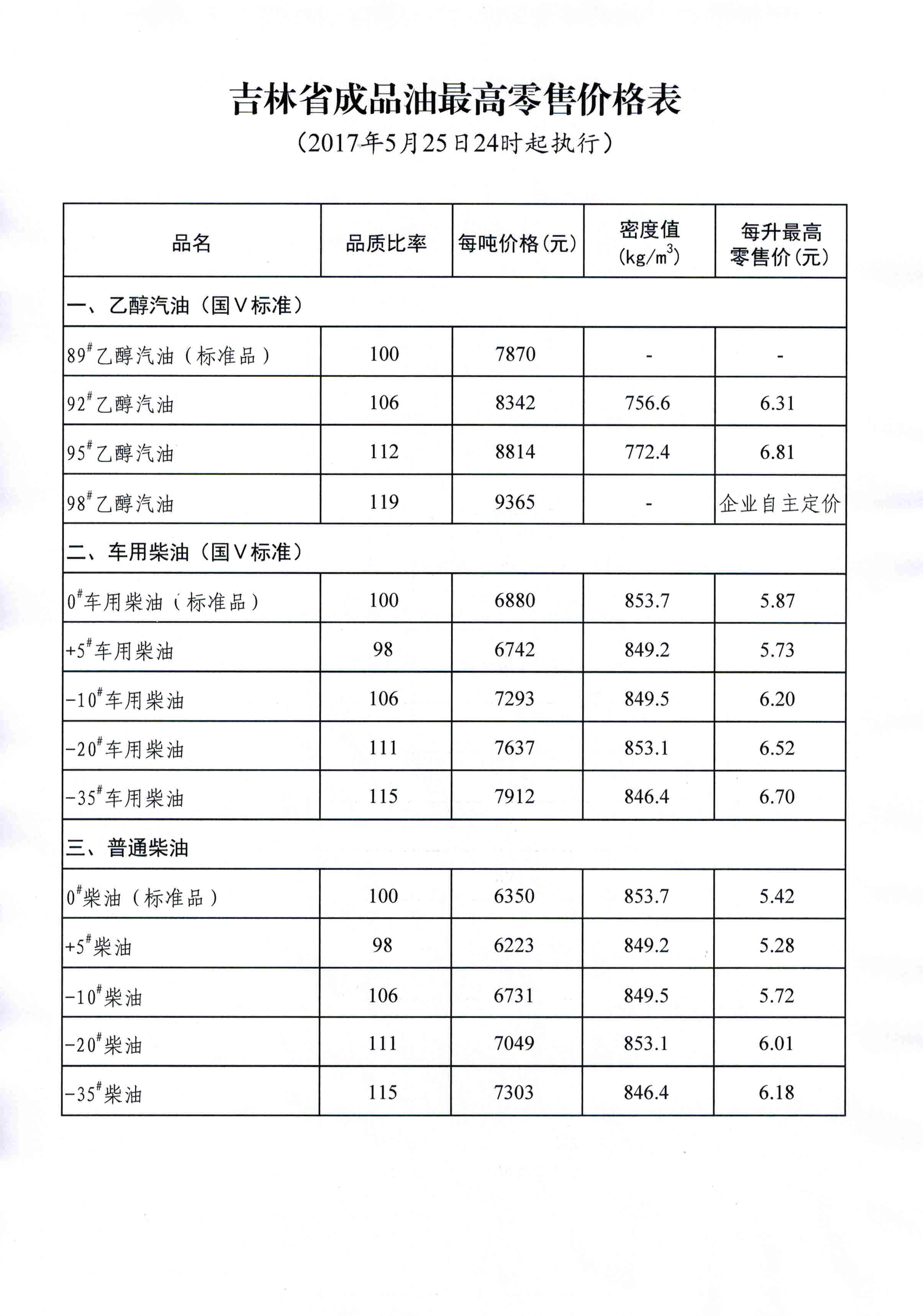 国内成品油价格按机制调整(2017年5月25日24时起执行)