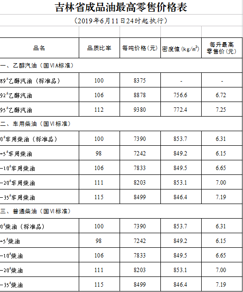 国内成品油价格按机制调整(2019年6月11日24时起执行)