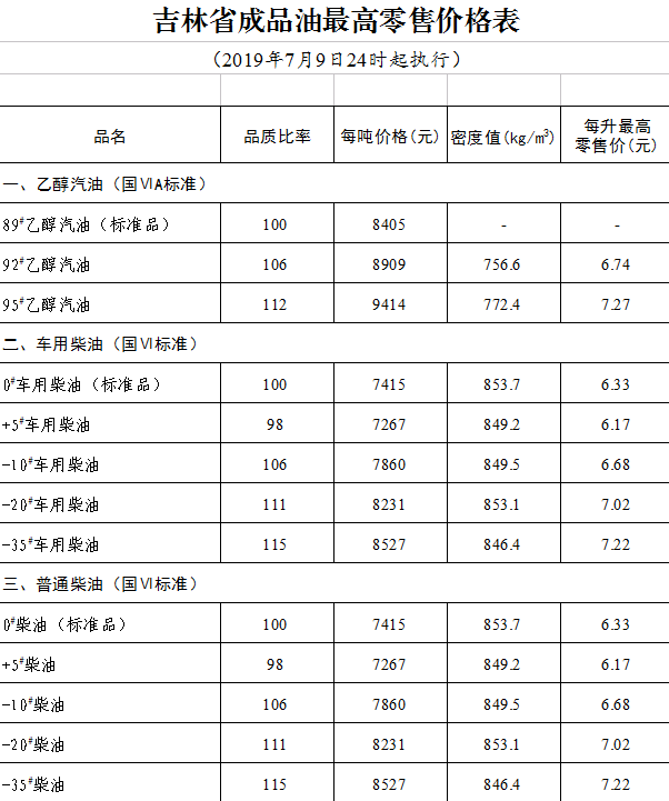 国内成品油价格按机制调整(2019年7月9日24时起执行)