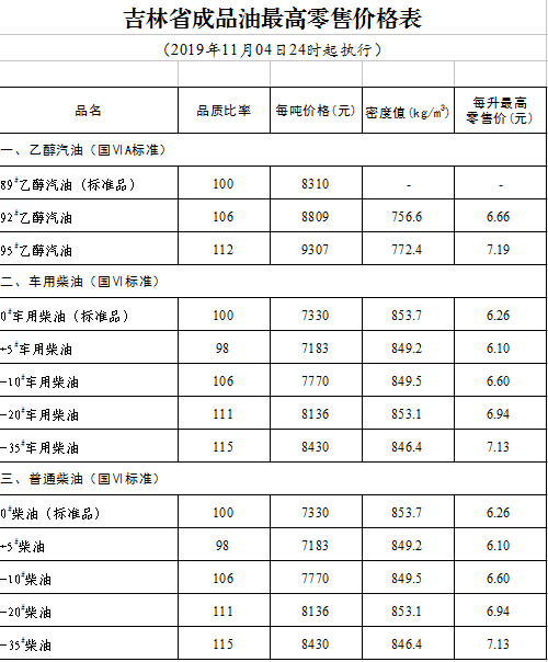 国内成品油价格按机制调整(2019年11月4日24时起执行)