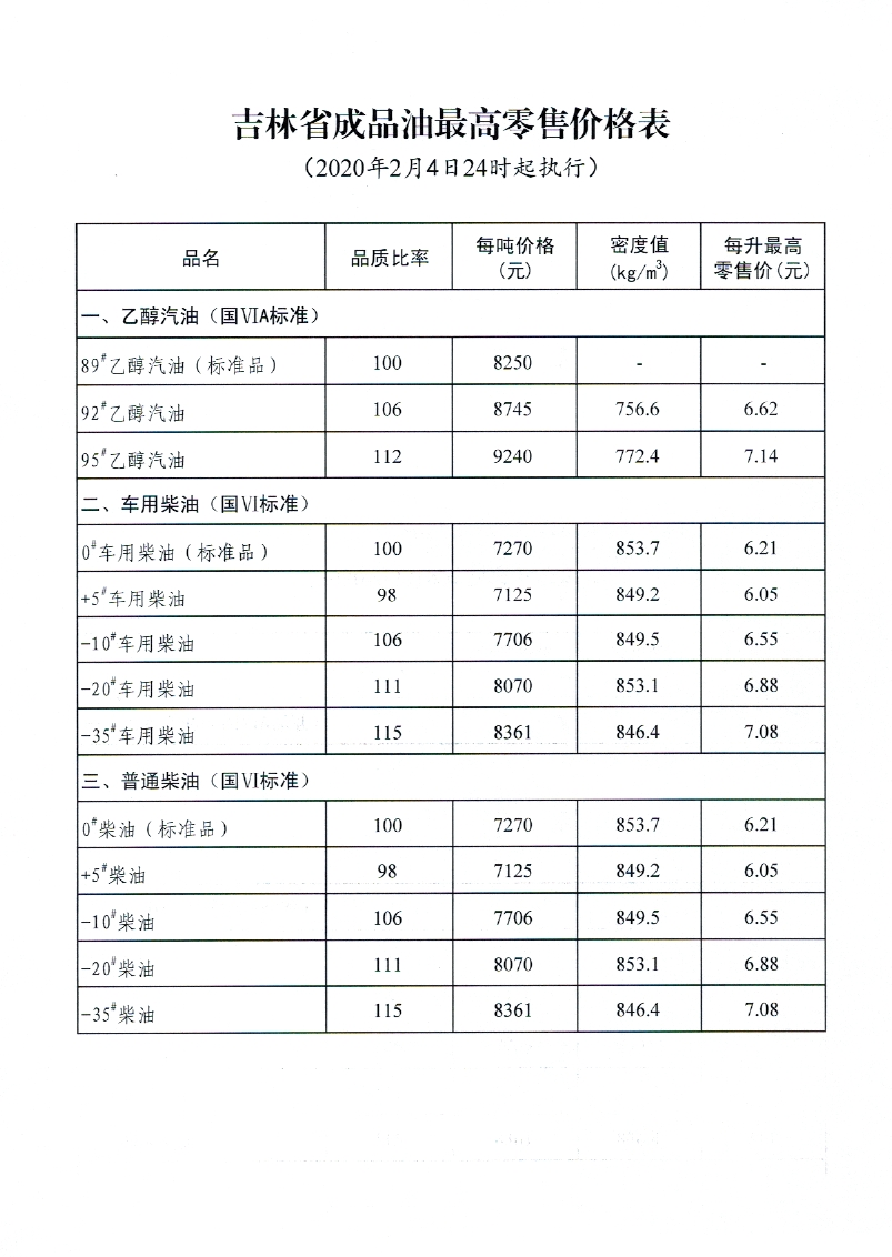 国内成品油价格按机制调整(2020年2月4日24时起执行)